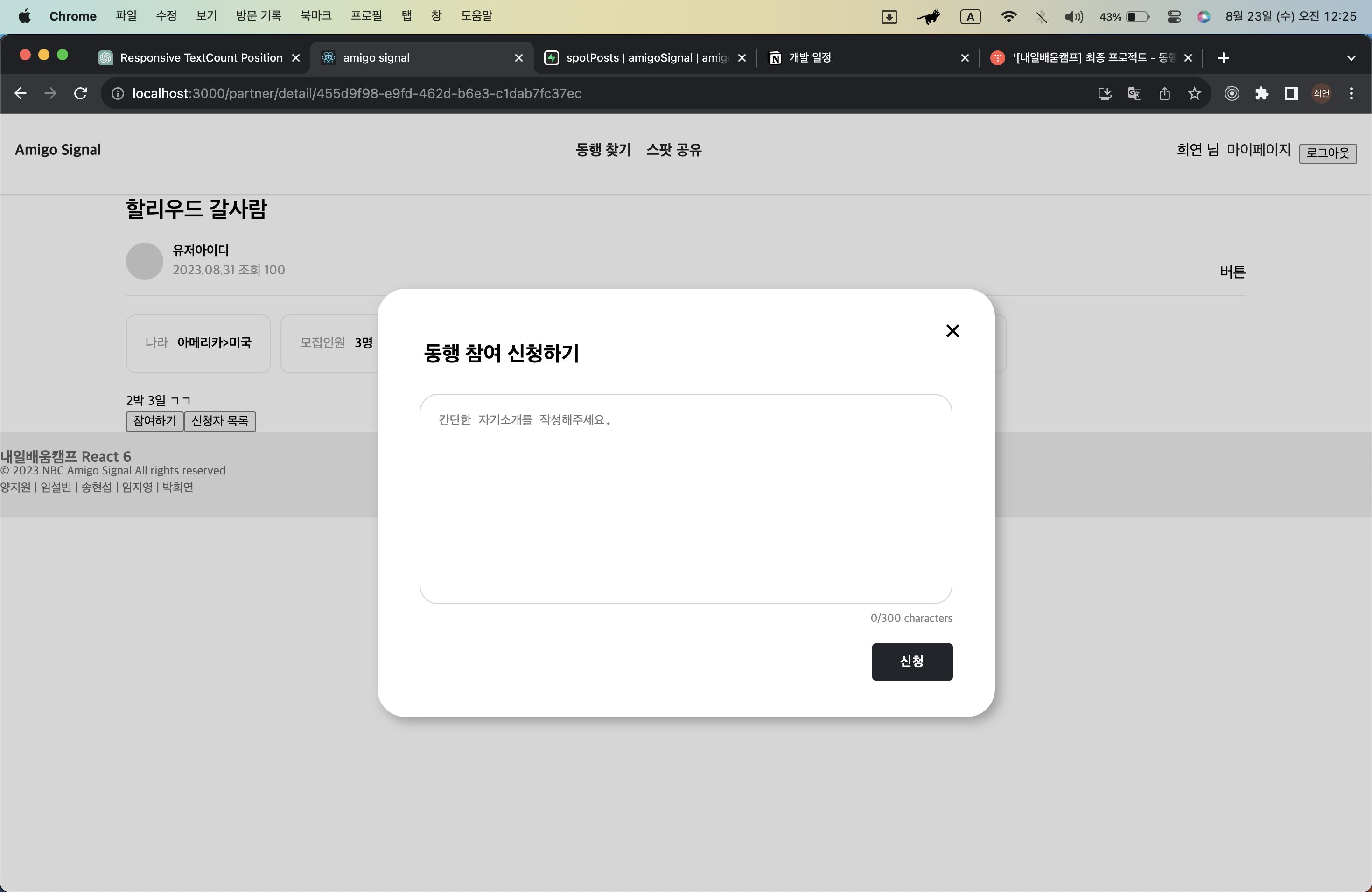 5) '동행 참여 신청' 모달 children 내용 -> 레이아웃 완성