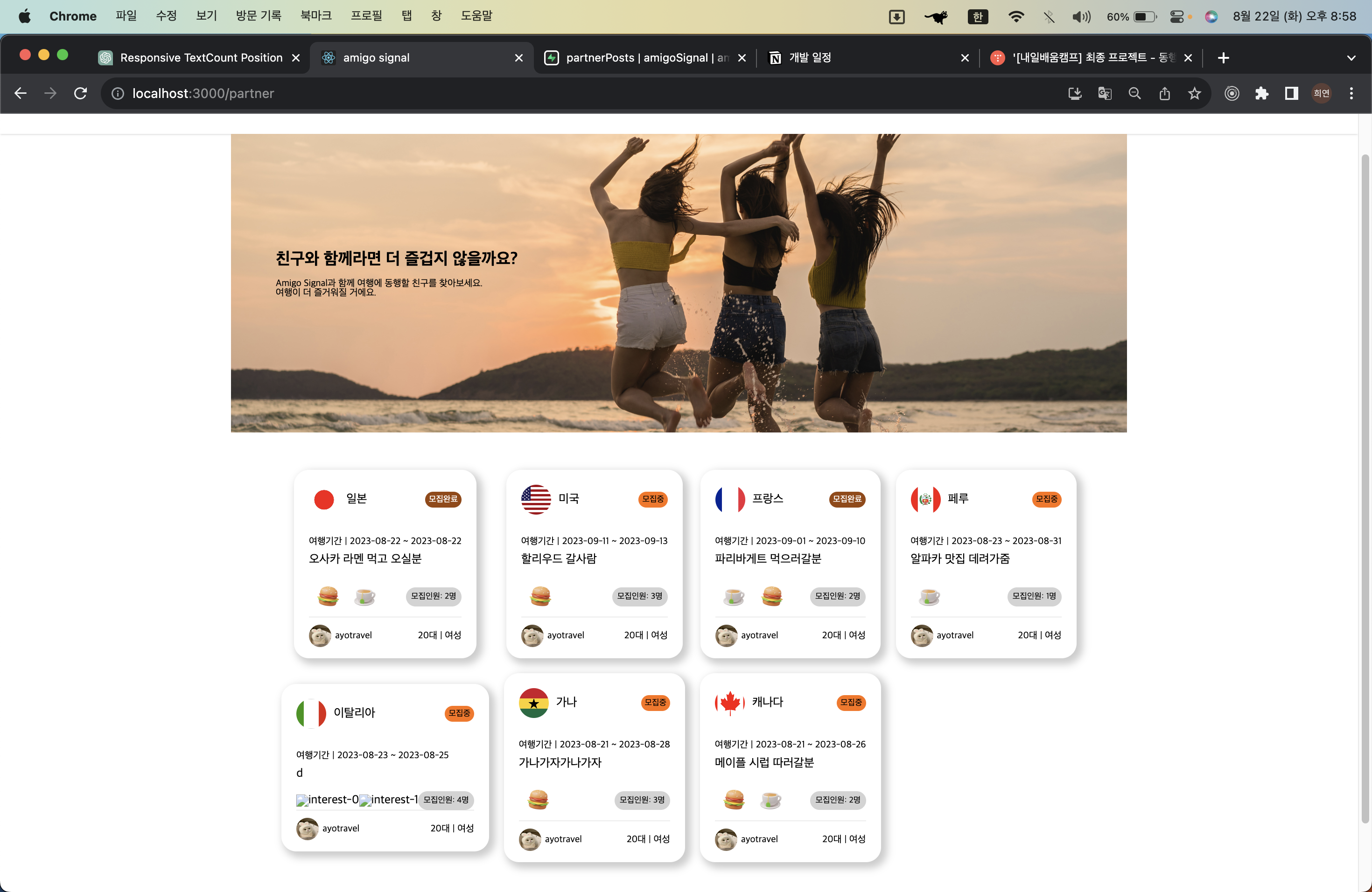 이제 아래와 같이 동행글 목록 data는 잘 불러와집니다.